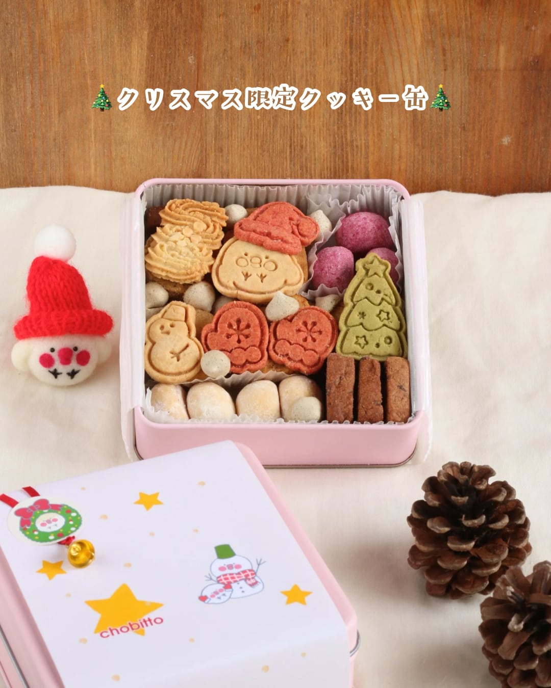 ツリーや雪だるまなどのクリスマスらしいクッキーに、昨年大好評だった限定フレーバー2種を加えた、かわいさとおいしさがぎゅっと詰まったクリスマス限定クッキー缶です。